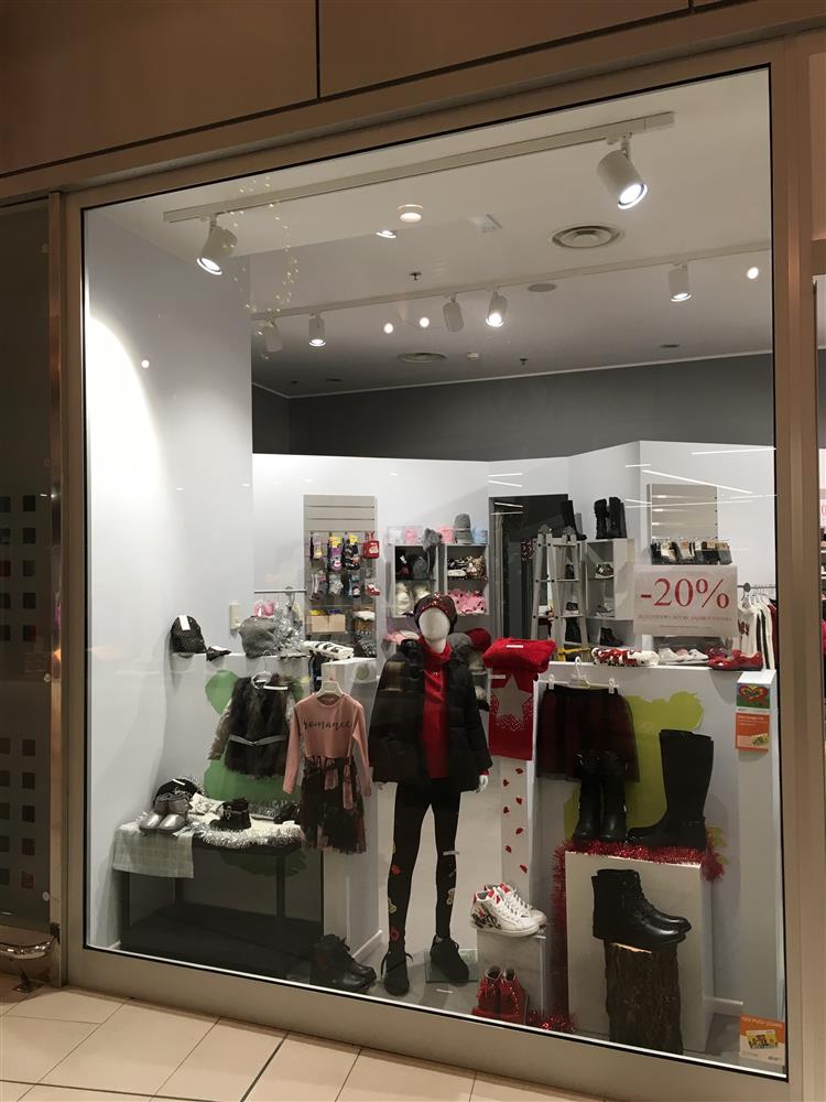 Negozio di calzature donna e bambino, abbigliamento fino ai 16 anni. Centro commerciale Belforte Monfalcone. Realizzazione e messa in opera dell'impianto elettrico e di illuminazione.